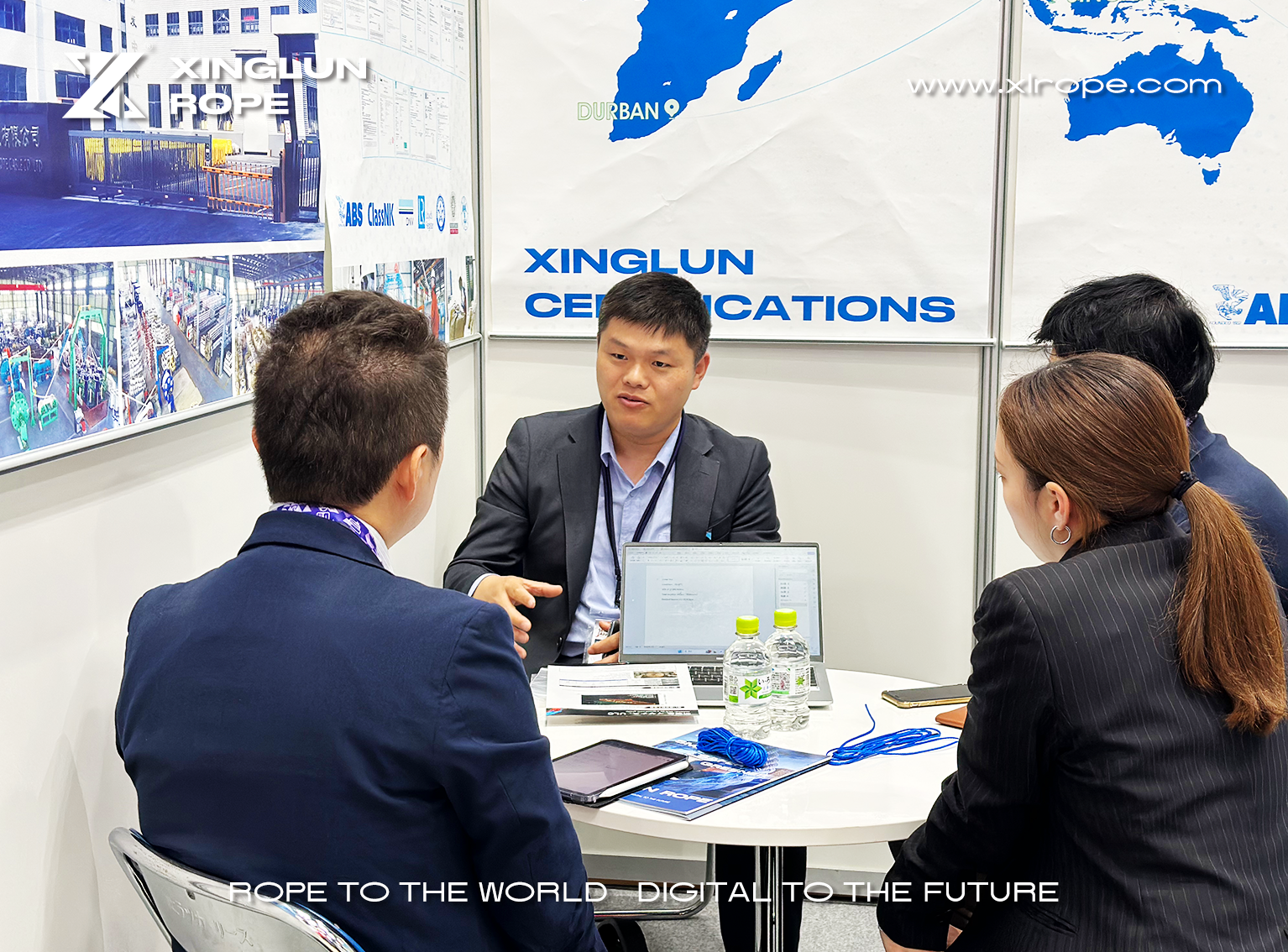 На стенде 4D-09 компания Xinglun Rope приветствовала множество новых и давних клиентов, а также отраслевых партнеров. Были проведены углубленные обсуждения по таким темам, как выбор продуктов, их использование и обслуживание, а также цифровое управление. Благодаря этим обменам компания в полной мере продемонстрировала свои возможности систематического обслуживания, получая при этом свежие идеи и вдохновение из каждого разговора.